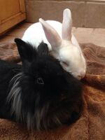 Rabbits are highly social animals and ideally should be kept in pairs. However, a single rabbit is possible given that the owner be prepared to devote significant time to interact with the rabbit and provide companionship.[1] Additionally, while highly social, rabbits are also territorial and have a dominant-submissive social hierarchical nature, meaning an owner cannot expect any two rabbits to get along upon meeting. Bonding rabbits is the process of dating that allows rabbits to trust each other to live, sleep, eat, and play together without vicious territorial fighting and often takes a couple weeks to months.