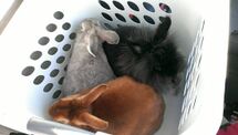 - Placing the rabbits together in a carrier or large box, basket, or bucket and placing them in a neutral area after doing one of the following: