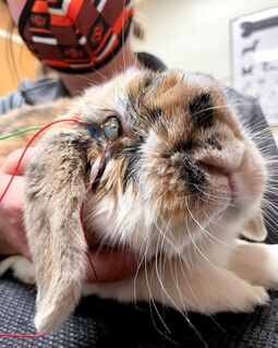 Cataracts are an opacification of the lens in the eye. The most common cause of cataracts in rabbits is the presence of E. cuniculi.