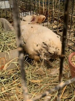 Flystrike, also known as fly strike or myiasis, is a potentially fatal disease that is common in the warmer months of the year. It is caused by several types of insects that will lay eggs in the wounded skin of mammals, and the maggots hatching from the eggs then digest living tissue.