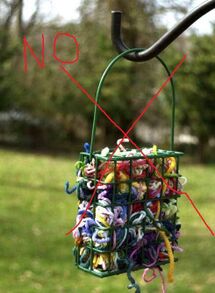 DO NOT offer laundry dryer lint either. The lint collected in your dryer filter may seem like ideal nesting material, but it isn’t. It will soak up water and may be steeped with chemicals unhealthy for birds, such as remnants of detergent and softener.