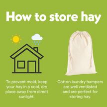 Hay may be dried, but it needs to be able to breathe! Hay should be stored in a cool, dry place out of direct sunlight and in a container where it can breathe and not get mouldy. You can store your hay in a loft, garage, shed or cupboard in the house. Store it in: