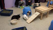 Some rescues will host an event that helps to socialize your bunny and enrich their lives. Groups of seven or more spayed and neutered rabbits are let loose in a large play area with edibles and toys.