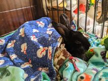 If your rabbit is dry, a heating pad, a plastic bottle full of hot water, a microwaved sock full of rice, or a SnuggleSafe disc should be wrapped in a towel to prevent burns. If you do not have any heating accessories, you can microwave a towel or blanket for 30 seconds to temporarily heat it up, or wrap your rabbit completely in a dry towel or blanket. Portable hand warmers are also extremely useful under towels and blankets and should be moved around the body every 5-10 minutes to warm them up.