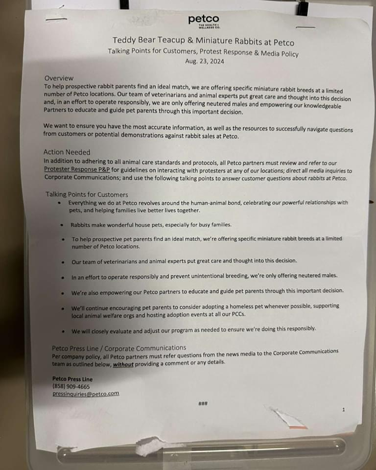 BOYCOTT Petco! This is all about making money off rabbits without regard to their welfare, and we won’t stand for it.