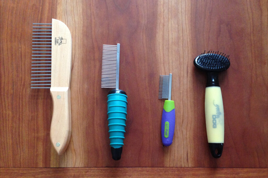 On the topic of of dull blades: cutting through mats causes blades to heat right up and dulls them down really quickly. Areas that are slightly tangled, or delicate/difficult can be dealt with by first using a small comb. Combs are better than the clipper for small mats and tangles — use the comb to break up the tangles and then follow up with the clipper. Also use a comb in delicate areas like around the tail and pelvis without using the clipper at all.
