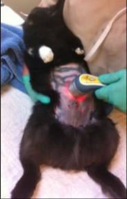 Cold laser therapy helps reduce pain and inflammation, and it speeds the healing of injured and inflamed tissues. Frequency of treatment depends upon the condition being treated, as well as whether the issue is acute or chronic in nature. The effect of cold laser therapy is cumulative, with each treatment building upon the last. A rabbit with lumbosacral degenerative joint disease (discopondylosis), for example, might receive treatments as follows: two per week for one to two weeks, then one per week for several weeks, followed by several monthly treatments, and then only once every three to four months or as needed to keep the rabbit comfortable. Every patient and every case is different, and just like with people, overuse of muscles and joints or a newer acute injury might require a temporary increase in frequency. For wound healing, however, the frequency would be determined by healing response because each wound is different. Generally, wounds require two to three cold laser treatments per week for several weeks.