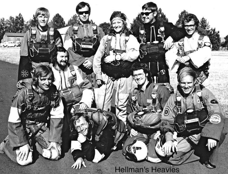 Sandi had many adventures before focusing on rabbit rescue. In 1974 she lived in Johannesburg, South Africa, for six months. Here is a photo of her and the rest of the “Hellman’s Heavies” skydivers.
