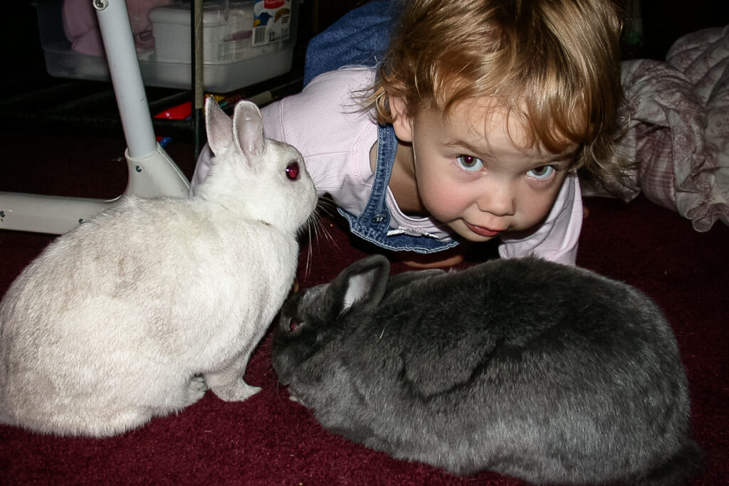 • A 2-year-old who has been raised alongside a rabbit may already show considerable empathy and understanding towards the animal. It’s important to keep reinforcing BUNNYRULES #1 through 4. Focus on leading by example rather than frequently saying “No”; children often learn best through observation and mimicry of adult behavior.