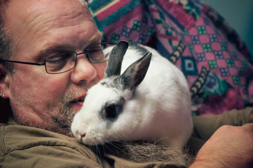 I was not pre-sold on the idea of David Love’s book, Buns Travel Across America, because I couldn’t imagine a rabbit enjoying such an intensive schedule of people and places and public attention—until I met the 8-year-old Buns in person. When she arrived at our front door, she was snoozing on her back in Dave’s arms. Buns is an extraordinary rabbit, in a 3% minority that enjoys going to new places, meeting new people, and sitting on a variety of laps. It would be an unfair projection of the exceptional, if we expected all rabbits to behave in a similar manner.