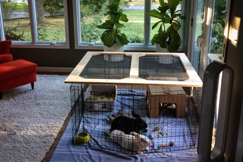 Another way quarantine might be useful in your own home is to prevent a disease outbreak among multiple rabbits. We don’t normally separate bonded bunnies when one of them is sick (assuming that the companions have already been exposed and that separation would add to the stress). If you have several pairs of rabbits, however, you can set up mini-quarantine areas among the groups. You can minimize shared air space by using solid partition between habitats. That will help keep rabbits with respiratory disease from sneezing into air that is inhaled by rabbits from other groups.