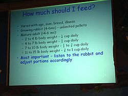 • Animal protein products: hydrolyzed poultry feathers, fish meal, milk products, and other items not natural to a rabbit's digestive tract.[13] Should not be found in rabbit feed.