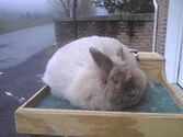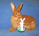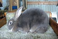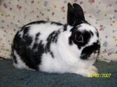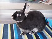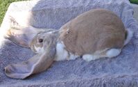 • A designer rabbit bred from the Dwarf Lop and Standard Rex breeds.
