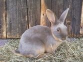 • Distinctive silver coloration with long silvery guard hairs evenly distributed up sides of rabbit.