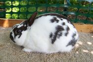 • Accepted ARBA colors: white with black or blue spots and spine stripe.