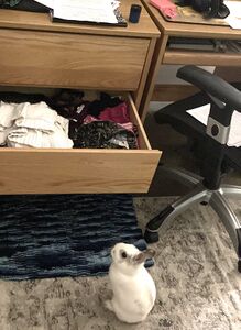 - Low surfaces. Short chairs/sidetables/storage bins can act as stair steps for bunnies to reach high surfaces where they are unsafe. Keep chairs tucked under desks when not in use and stack low bins on top of each other to make the top surface too high for a rabbit to access.