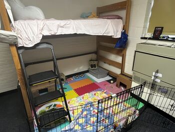 There are still some downsides to using an xpen setup. Xpens make the room feel smaller by allocating some spaces not for human use. Xpens are also bulky to transport, taking up a lot of room in a car and needing to go in checked luggage for a flight. When you leave college over the summer, you need to take the pen panels with you or purchase long-term storage.
