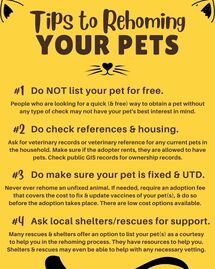 - Ask for a small rehoming fee to weed out people who are just looking for a cheap pet or a pet for nefarious intentions.
