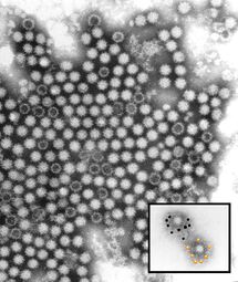 "This transmission electron micrograph shows rabbit calicivirus isolated from the liver of an infected rabbit." - source