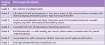 • Severe, often irreversible disease (Grade V). Bone infection along with joint and tendon swelling leading to abnormal stance and gait.