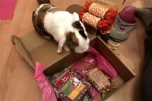 Mia checking out her first Happy Bunny Box! Picture by /u/MeddlinQ.