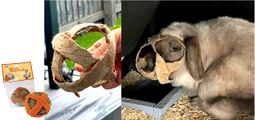 NOTE: Toys like the 'Quiko Fitness Foodball Carrot' can become dangerous when used. Flossie got her head trapped. Picture by HelenK.