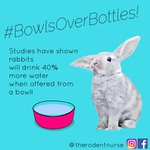 Some rabbits may not easily convert to using a water bottle if they are used to a bowl. It is a good skill to teach rabbits in the case of travel. A few techniques to try under supervision: