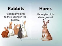 Young hares (leverets) are born fully furred and with eyes open. By contrast, cottontails and rabbits have young that are born blind and hairless.