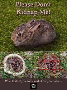 - ↑ 9.0 9.1 9.2 Rainbow Wildlife Rescue, Rescuing Baby Wild Rabbits - Often we do more harm than good